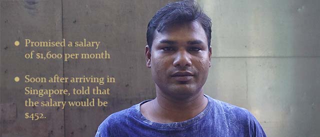 When Rahman Safiar went to the Ministry of Manpower (MOM) to get his Work Permit processed, he was in for a shock. It was not even two weeks after arriving in Singapore for a new job with a promised basic salary of $1,600 per month, yet he was told by an MOM officer that his employer was reducing his salary to $452 instead.