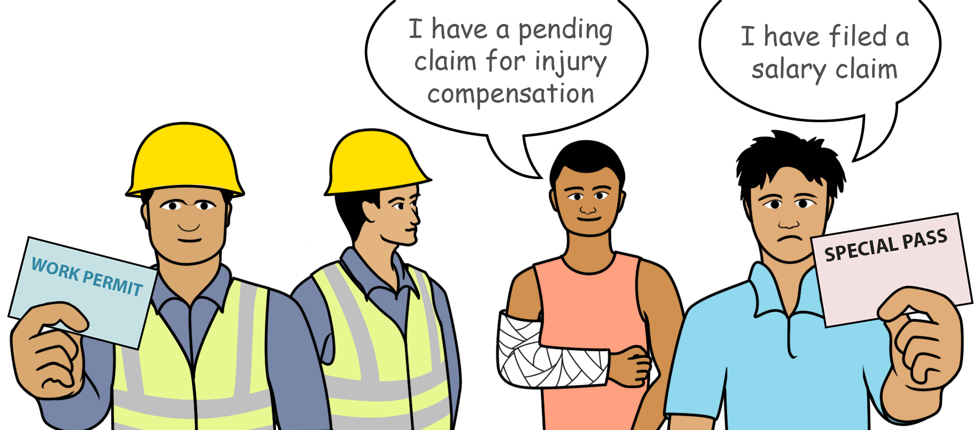 The great majority of migrant workers hold Work Permits. However, employers are free to cancel their employees’ Work Permits at any time, and this often happens after a worker is injured, or has fallen ill. Another common trigger for cancellation is when a worker files a salary claim against his employer for unpaid or underpaid salary .